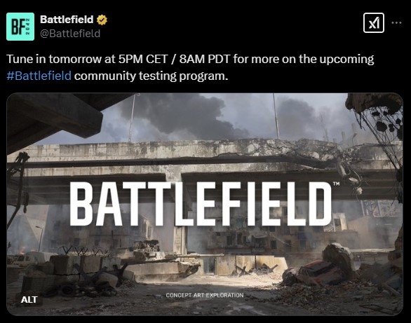 另外,EA宣布将于当地时间2月3号上午八点(PDT)宣布《战地》新作玩家封测事宜: