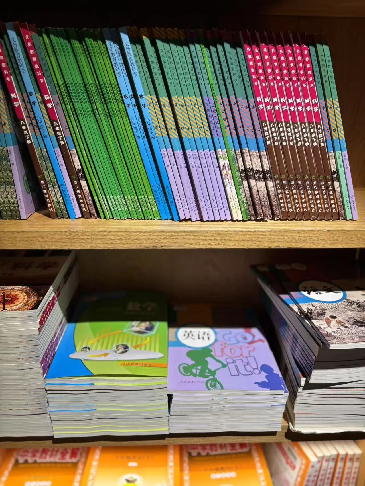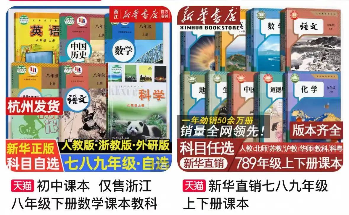 她总结出一个经验,囤课本也要“错峰”,暑假买下册,寒假买上册,库存很足,没人来抢。“前几天女儿同学妈妈去书店买课本,发现语数英科都有,但八年级下册的历史已经断货了。”陈女士说,庆幸自己在半年前就囤好了,现在很淡定。