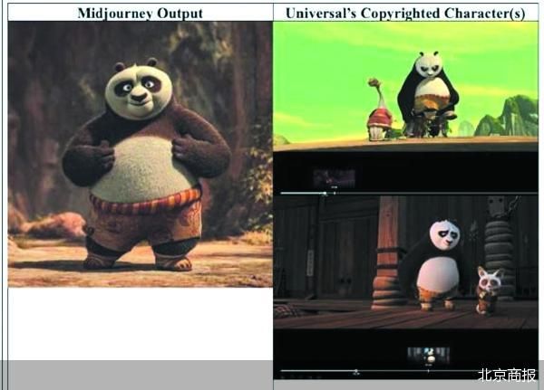 在长达110页的诉状中,迪士尼和环球影业提供了Midjourney生成图像与原版影视素材的对照示例,指出即便用户输入诸如超级英雄战斗场景等模糊提示,也能生成极类似于蜘蛛侠、雪宝、功夫熊猫等经典角色的图像。